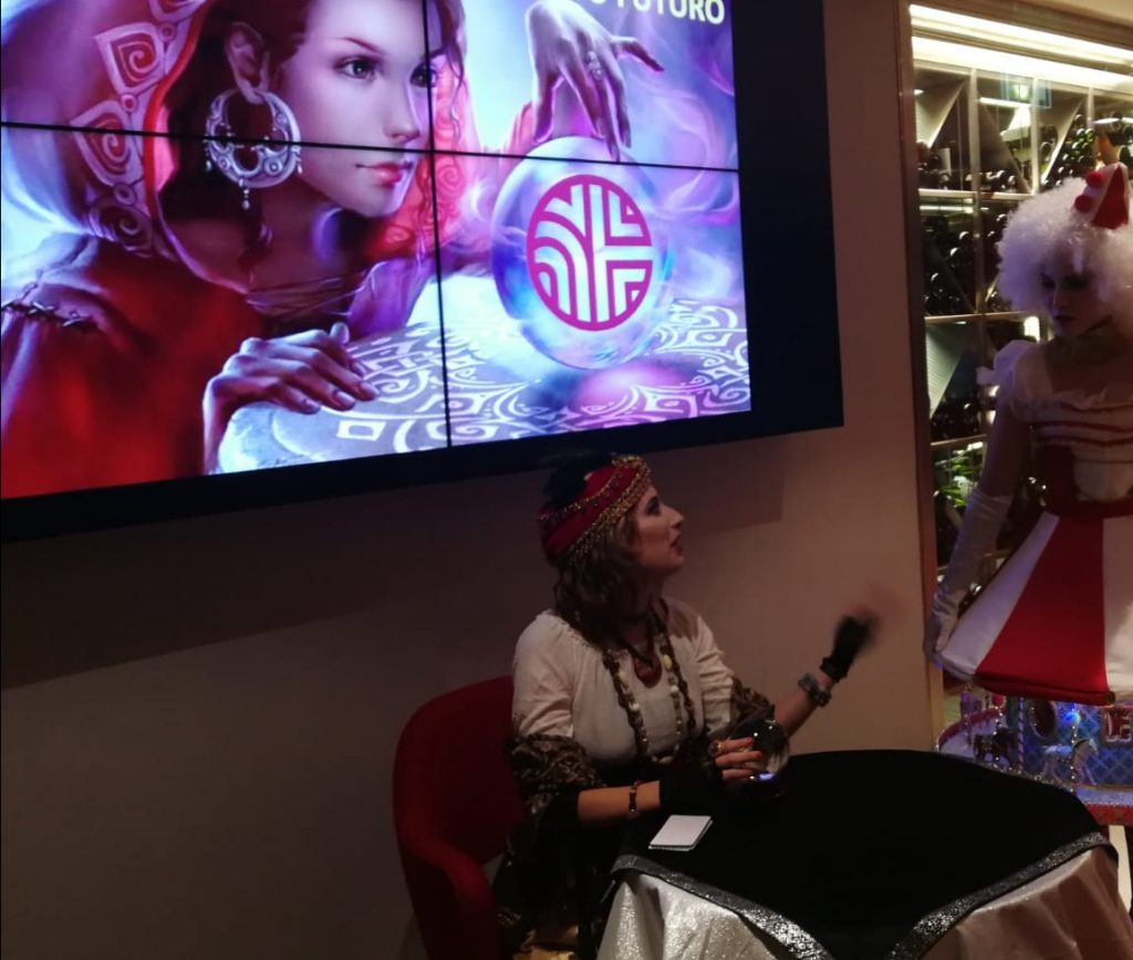 Una pitonisa, una maga y/o una tarotista contestando preguntas a los invitados de forma simpática y teatralizada.